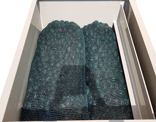 - Pro jednodušší manipulaci doporučujeme použití filtračních pytlů, do kterých jsou kostky volně nasypány. Pytle se naskládají do koncové komory, tak aby došlo k jejímu optimálnímu vyplnění.